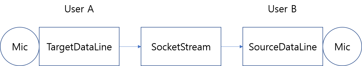 연결이 성립되면 Mic, Speaker 클래스의 스레드가 작동하여 데이터를 주고 받으면서 소리를 들려준다.